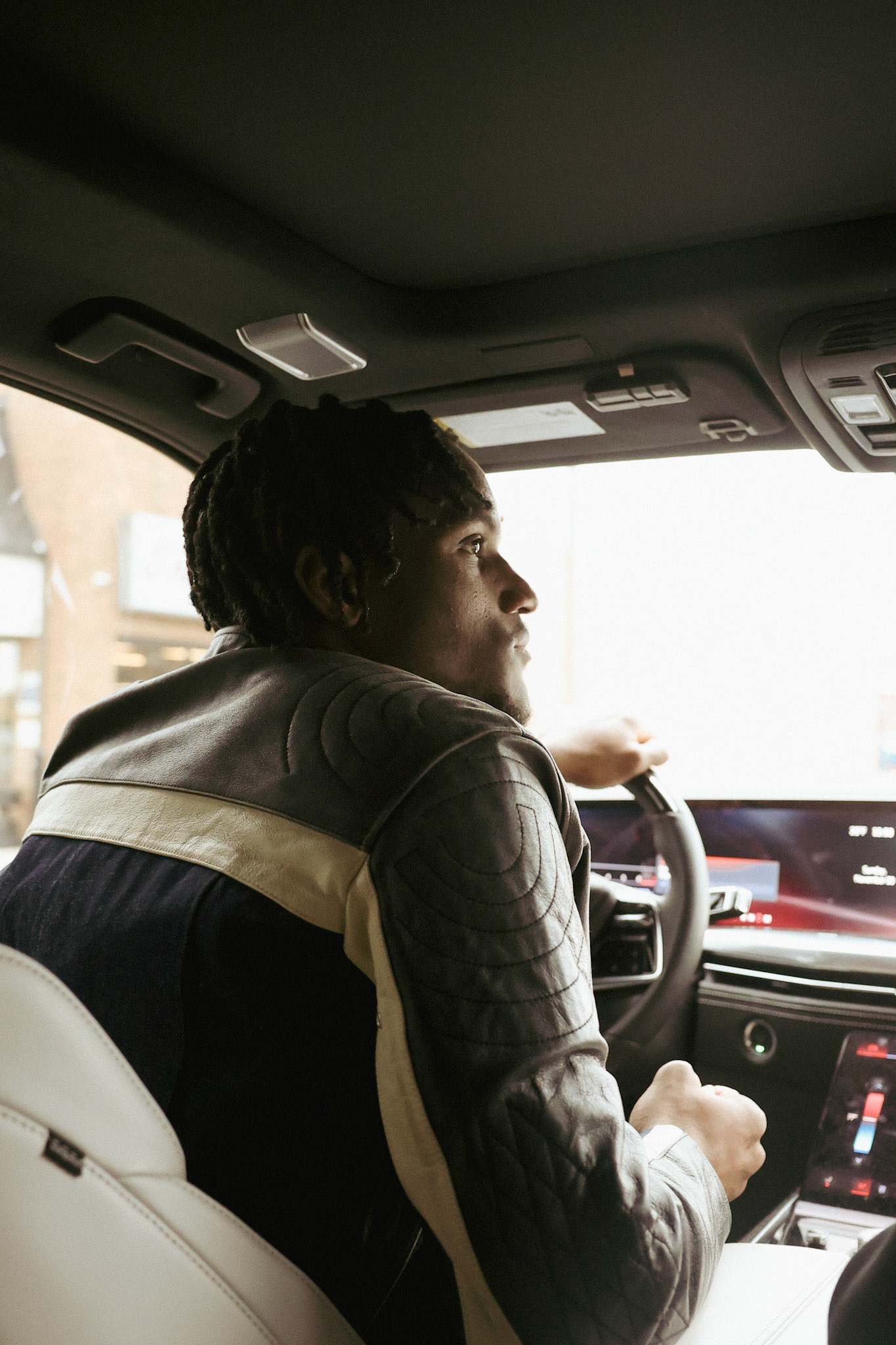 Inside the vehicle, the mood shifts. His expression turns more focused. The hands on the wheel, the slight lean forward, the thoughtful gaze through the windshield all suggest preparation. The charvarius ward gameday outfit colts theme becomes more than style. It becomes about mindset.