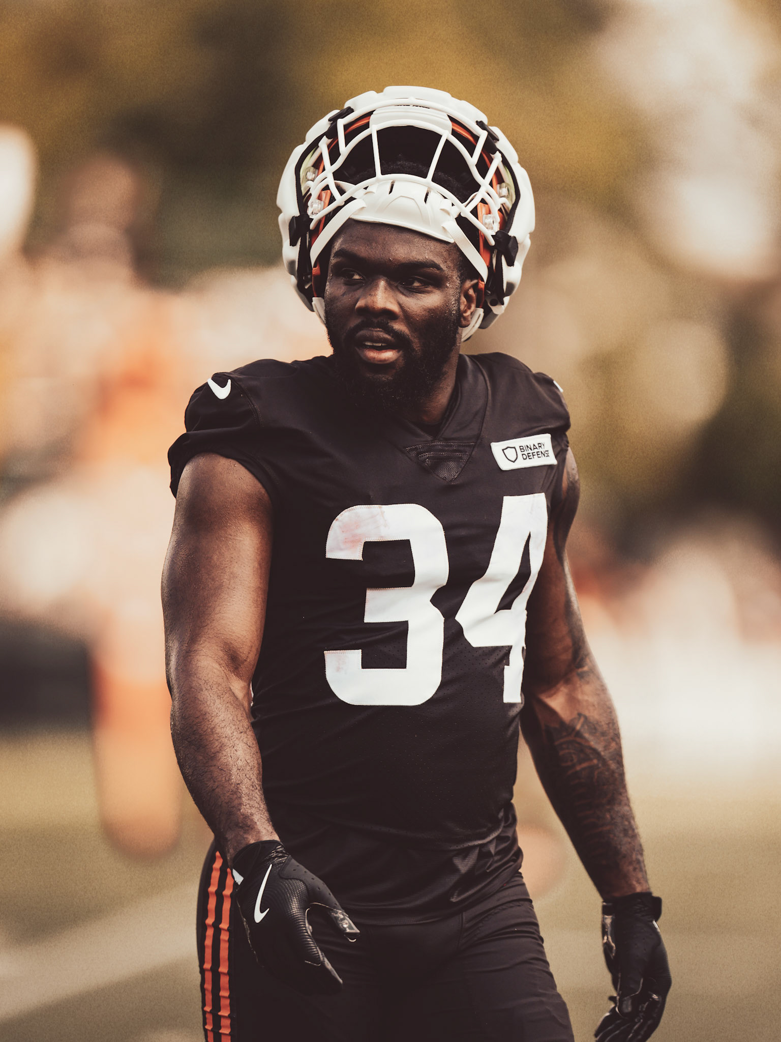 From close-up portraits dripping with sweat to wide shots of team huddles, I focused on details that fans often miss from the sidelines. The way the light hit a player’s helmet, the subtle exchange of focus between quarterback and linemen, and the raw emotion after a drill—all of it told a story worth capturing. The Cleveland Browns practice field wasn’t just a setting, it became a stage of resilience and preparation.