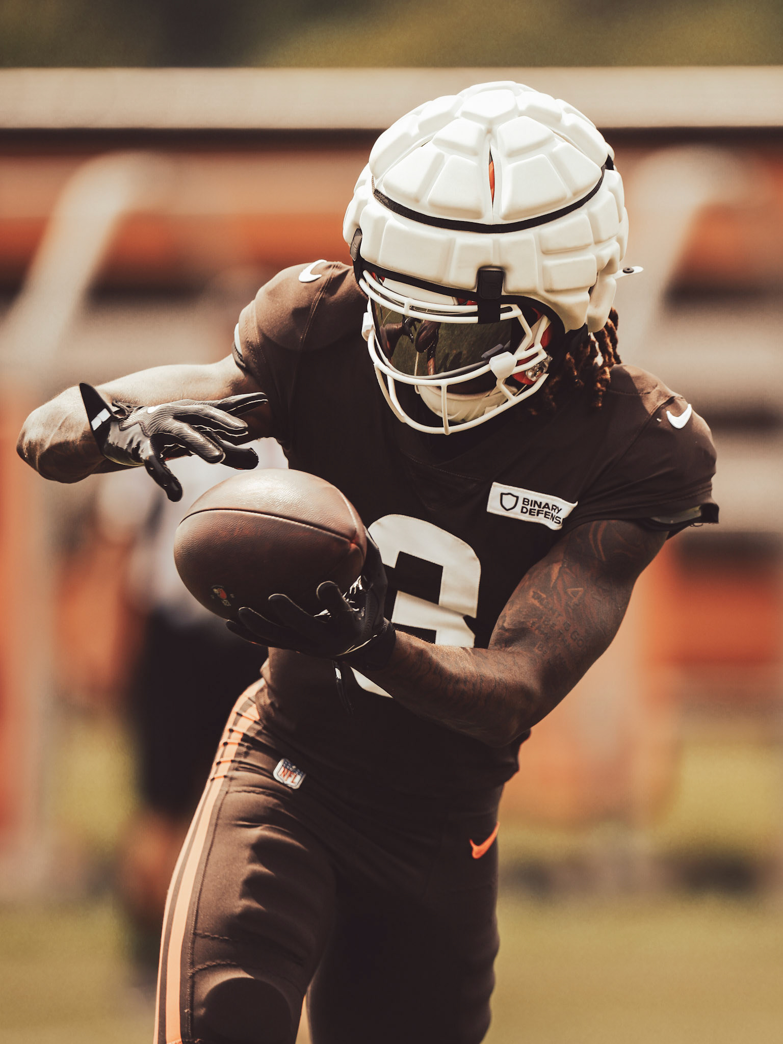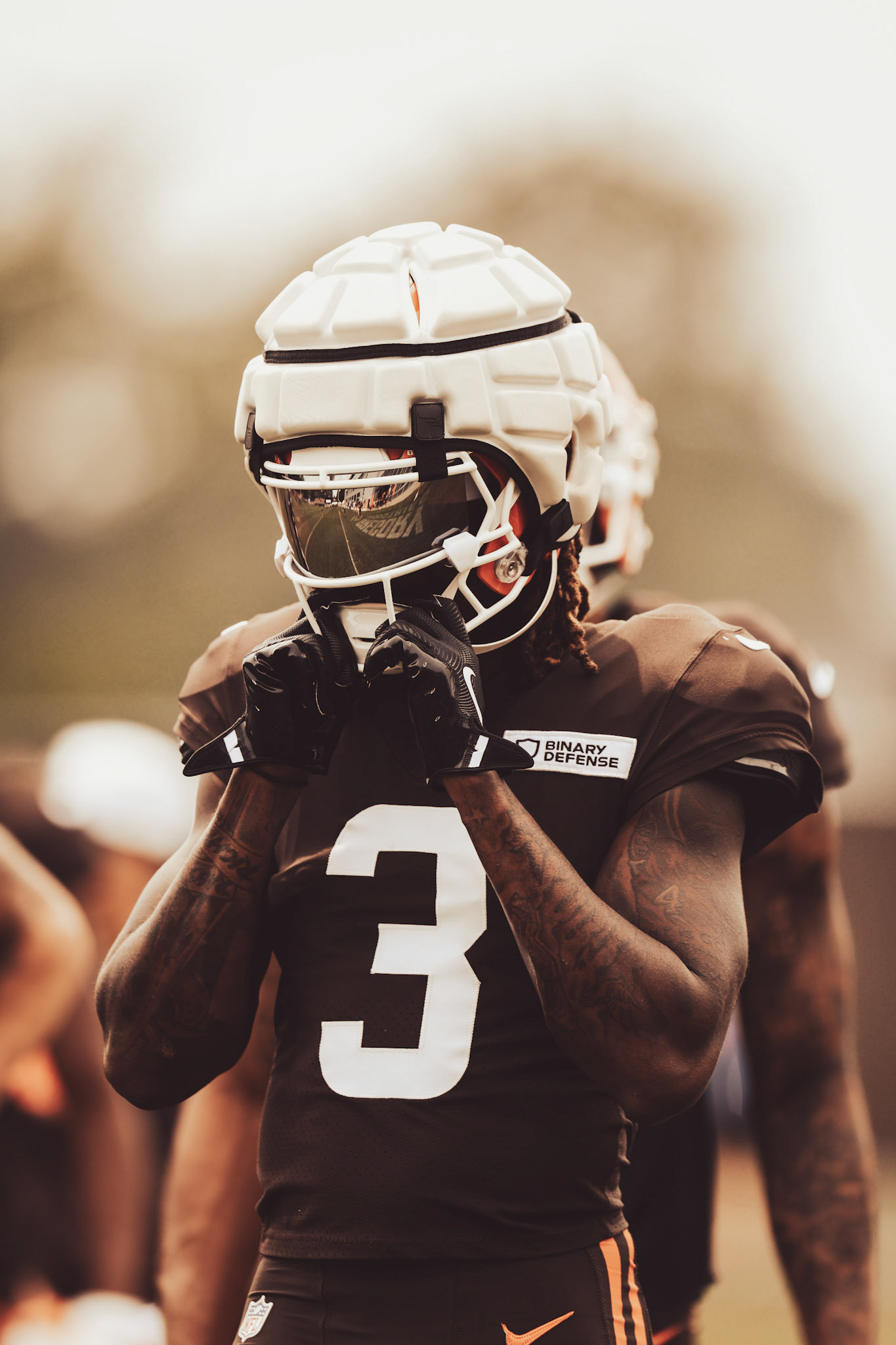 From close-up shots of wide receivers adjusting their gloves and lining up for plays, to wide angles of the entire field in motion, every image told a story of preparation. The Cleveland Browns bring intensity to every drill, and I worked to capture that passion in every frame. The sweat, speed, and strength of these athletes translated into powerful visuals that show the game beyond just Sunday afternoons.