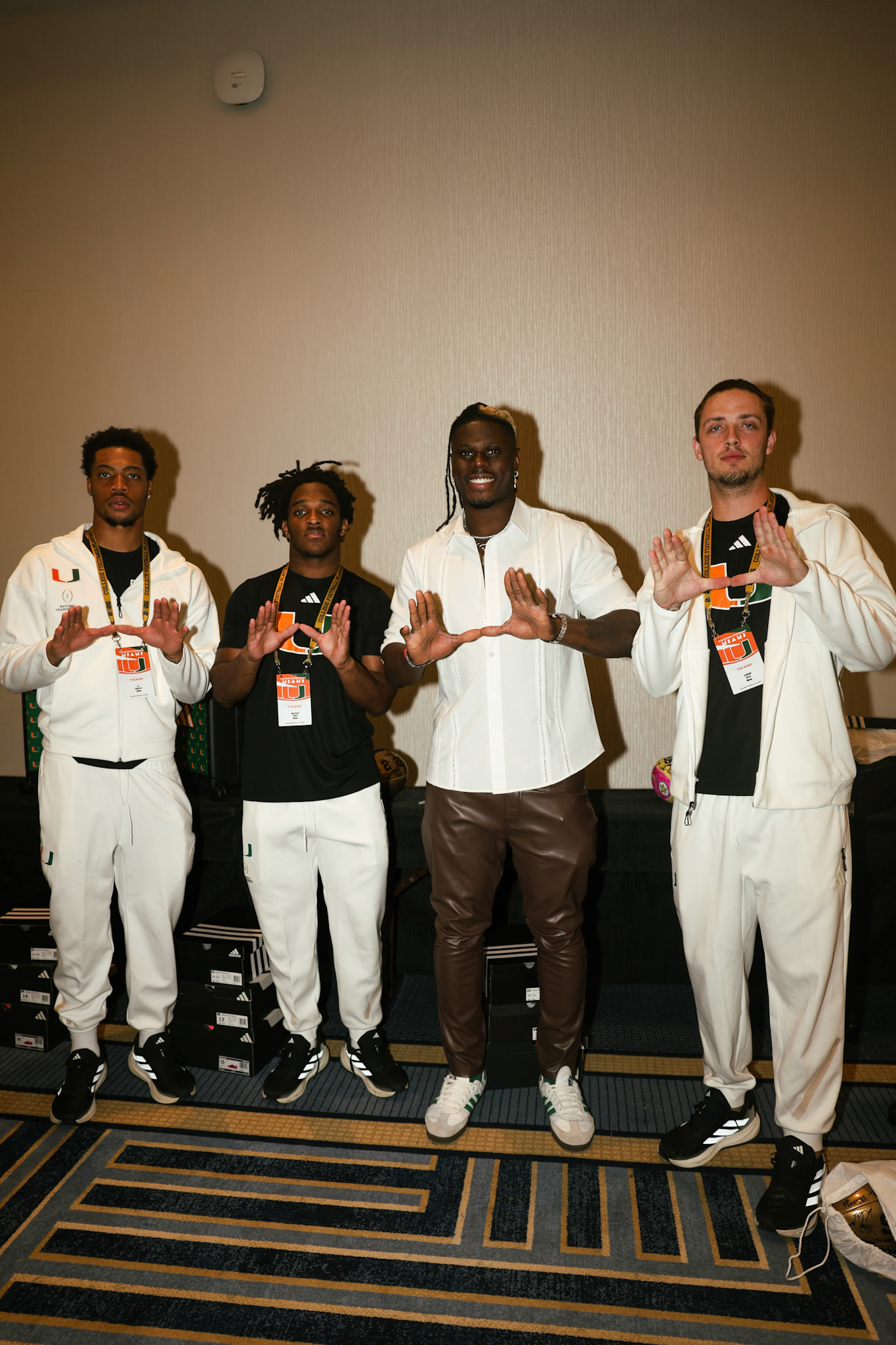 The story behind these frames begins long before the flash goes off. David Njoku Miami trips are never just vacations or quick appearances. They feel intentional, layered with personality and presence. From the first image inside the hotel ballroom, Njoku stands relaxed but alert, dressed in a clean white button down paired with fitted brown leather pants and green accented sneakers. The setting is polished yet casual, with tables lined in the background and teammates and friends surrounding him. As a Cleveland Browns tight end known for his explosive athleticism, Njoku carries that same confidence off the field. The room feels like a prelude to something bigger, a calm moment before Miami’s night energy takes over.