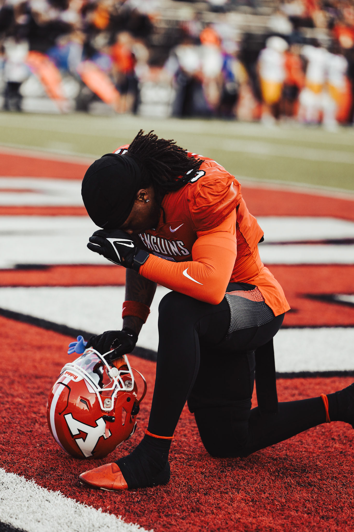 Not every meaningful image comes from the whistle. Youngstown State Football Game is filled with quiet scenes that say just as much as the big highlights. Players huddling to talk through a coverage, a helmet resting in gloved hands, or a brief stare at the scoreboard while the band plays in the background. I looked for those pauses where emotion surfaces and you can feel the pressure, pride, and brotherhood that hold a team together.